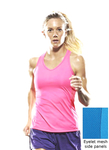 Breathable eyelet mesh side panel helps keep you cool and dry Racerback cut allows you to twist with ease 100% microfiber polyester pk maX with eyelet mesh contrast Inherent moisture wicking keeps you dry & comfortable Treated with BodyFresh